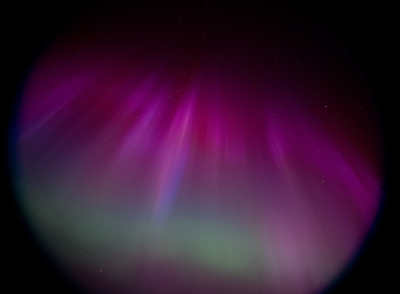 Nach Mai der 2. High-End geomagnetischer Sturm diese Jahr. Im Mai stachen vor allem die strahlenartige Struktur hervor. Diesmal waren die eindrücklich die Farben das Highlight, vor auch allem visuell.