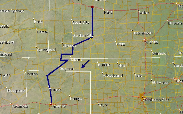 Heut geht es Richtung Texas-Panhandel, da dort morgen stärkere Gewitter möglich sind.