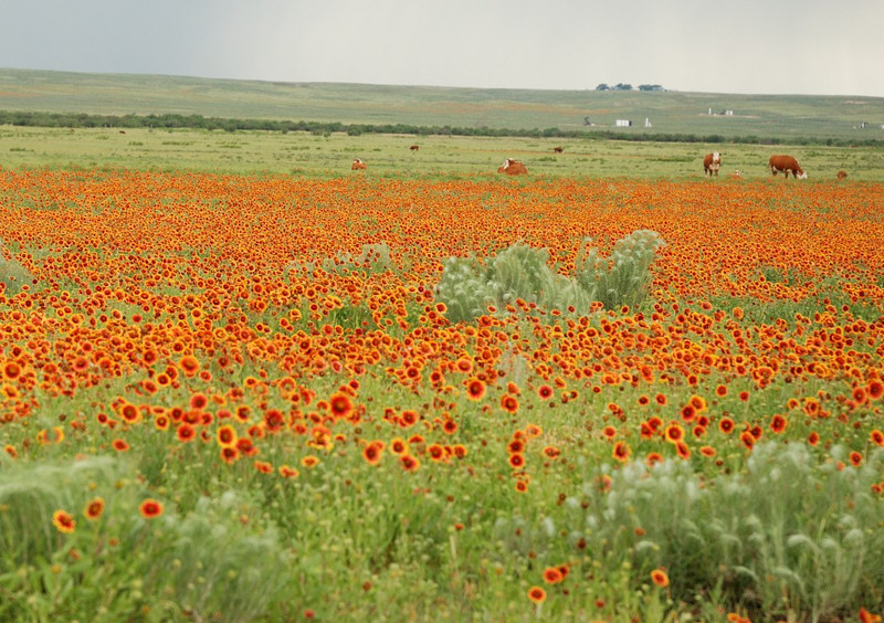 In Südkansas sieht es recht nett aus um diese Jahreszeit. Manchmal erstrecken sich Blumenwiesen bis zum Horizont.