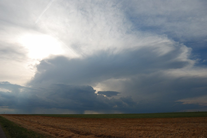 Nach einem 22-Oz-Steak-Stop in Dodge City blufft ein harmloser Cumulonimbus. Kurzzeitige Absenkung bis zum Boden, aber (wie immer dieses Jahr) keine Haltbarkeit.