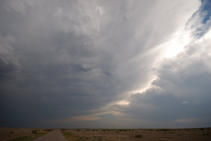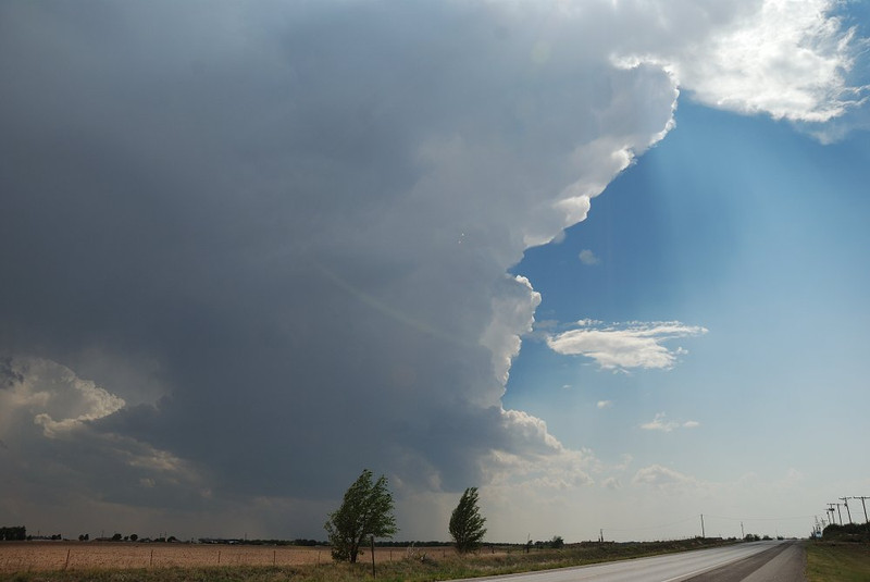 Eine fast stationäre Superzelle schraubt da vor uns die Wolkenmassen nach oben.