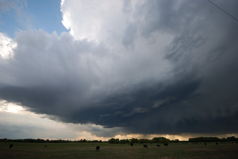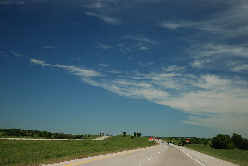 Nach Prüfungen der Karten sieht Südkansas in der Tat recht gut aus. 90° Windscherung unter MLCAPE > 1000. Wohl daher nicht bewarnt, weil die Windstärken aller Höhen recht gering sind. Aber fotogen muss ja nicht gleich gefährlich sein... und da die Richtung auch für die nächsten Tage passt - auf geht's.