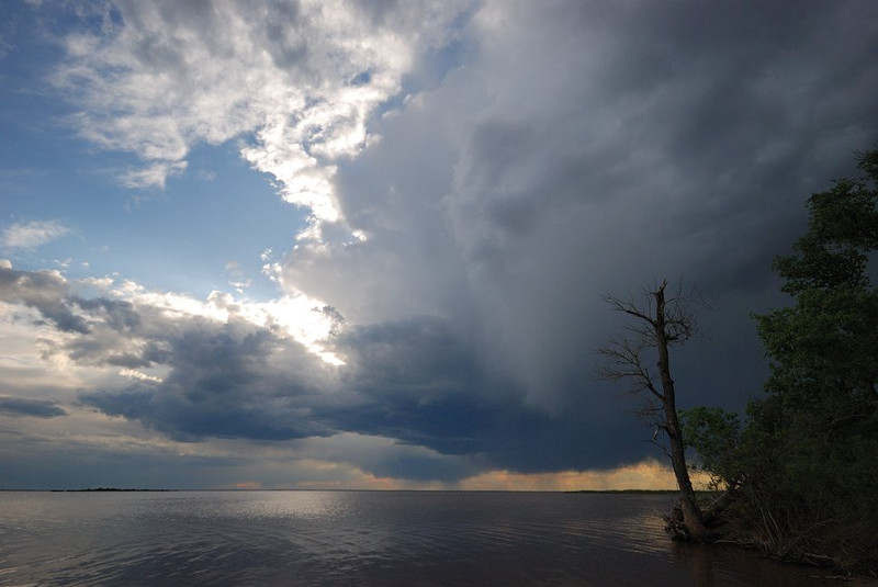 Eine hinter dem See stehende Schauerwolke baute mehr und mehr an.