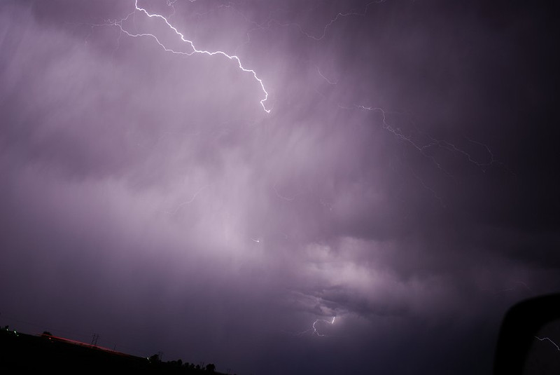 Die Zelle zog langsam nordöstlich weiter. Es sah mittlerweile durchaus nach einer Low-End-Superzelle aus (Lowering, Inflowband, regenfreie Basis). Rotation war mit dem Auge nicht zu erkennen, konnte aber im Nachhinein durch Zeitrafferaufnahmen sichtbar gemacht werden.