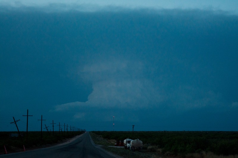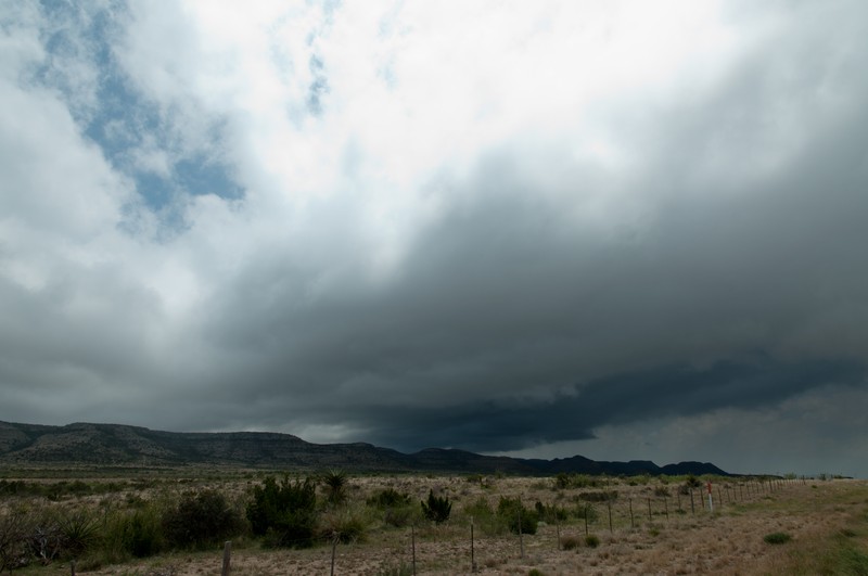 Heute sollte im Tagesverlauf in SW-Texas tornadofähige Gewitter drin sein. Und schon am frühen Nachmittag entstand dann auch eine einzelne Zelle im Raum Alpine, TX. Da wären wir wegen der ungünstigen Straßenanbindung eigentlich nicht rangefahren, aber die Radarechos sahen einfach so gut aus und die Zelle wurde bald Tornado-bewarnt..