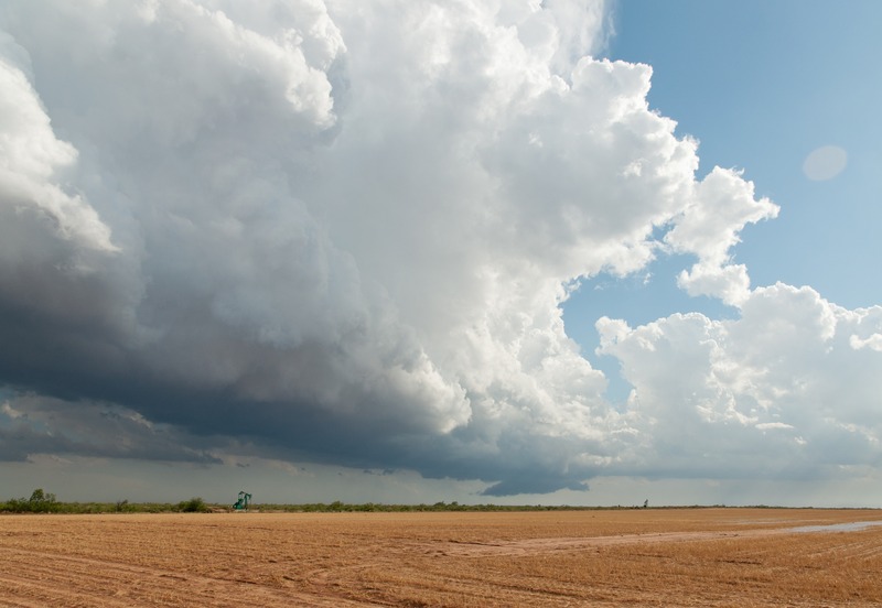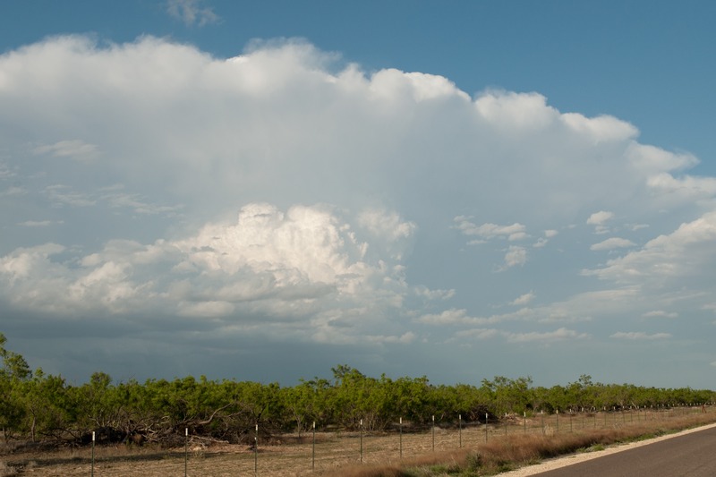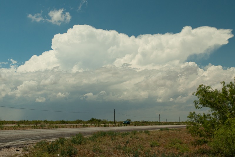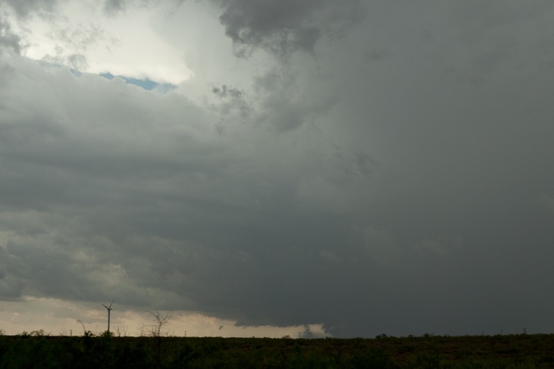 So hatten wir es heut erneut gleich mit einer ganzen Reihe Superzellen zu tun. Ein Höhentief lag etwa über Oklahoma und bescherte SW-Texas Westwinde in der Höhe und Südostwinde am Boden. Dazu noch 25°C Temperatur und Taupunkte um 18°C. Klingt erst mal gut.