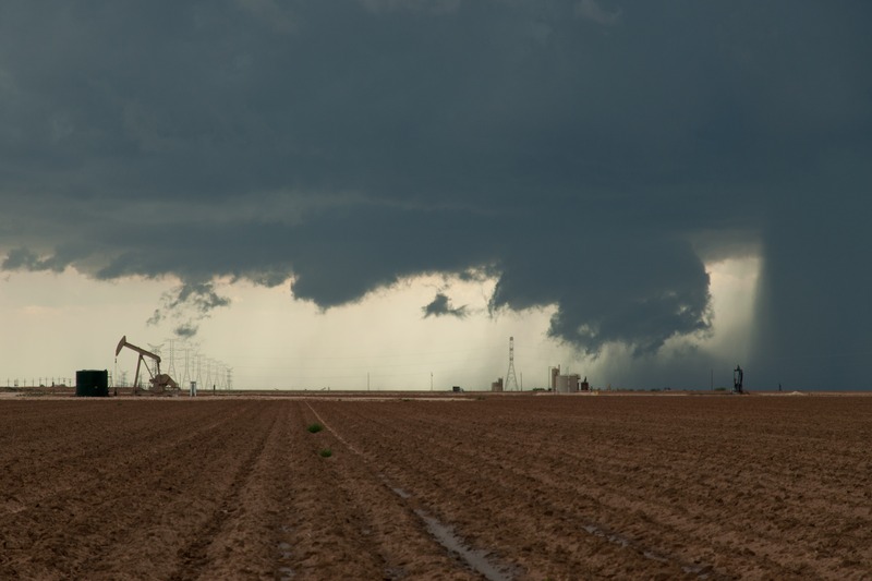 Etwa 30min später war die Rotation dann in den unteren Schichten angekommen und eine Wallcloud bildete sich aus. Bald wurde auch hier massiv bunter Staub von den Feldern eingesogen.