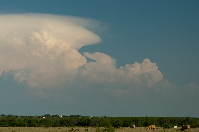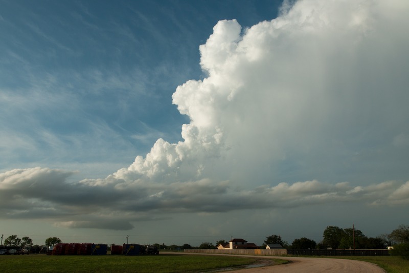 Wir sind zuerst einer tornadobewarnten Superzelle Richtung Südtexas gefolgt. Als wir nach 2 Stunden Fahrt endlich dran waren, zerfiel alles in einen losen Cluster von unorganisierten Aufwinden.
