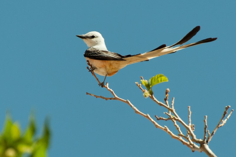 Ein "Scissortailed Flycatcher" - ein sehr geschickte Insektenjäger, der durch den Schwanz auch bei stürmischem Wind exakt fliegen kann.