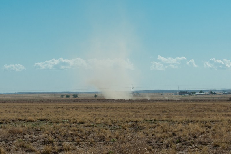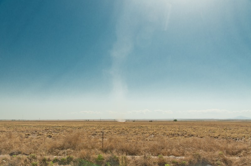 Einzige meteorologische Besonderheit heut war ein Staubteufel, der uns einen ganzen Haufen Tumbleweeds (diese rollenden Präriesträuche) unters Auto gekeilt hat: