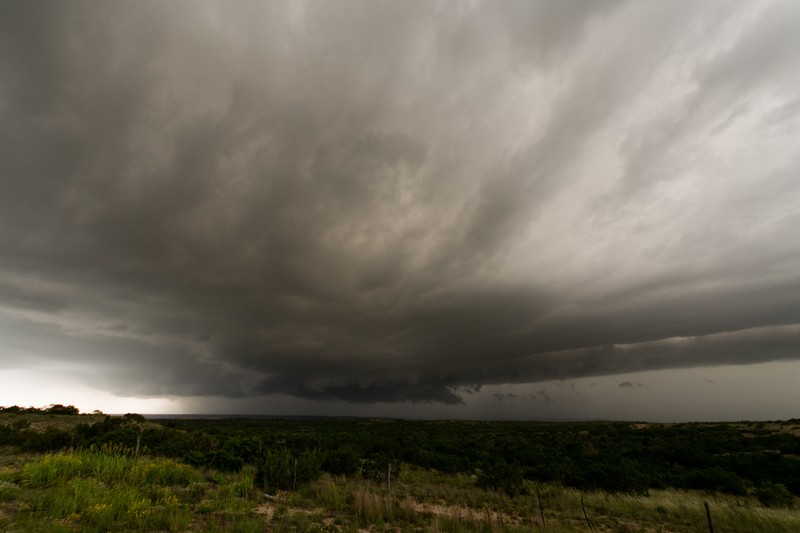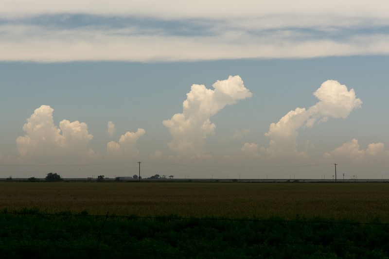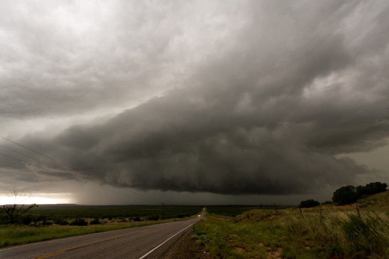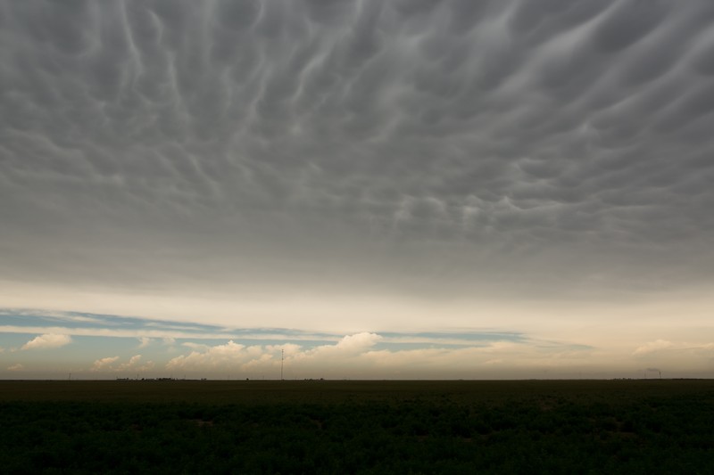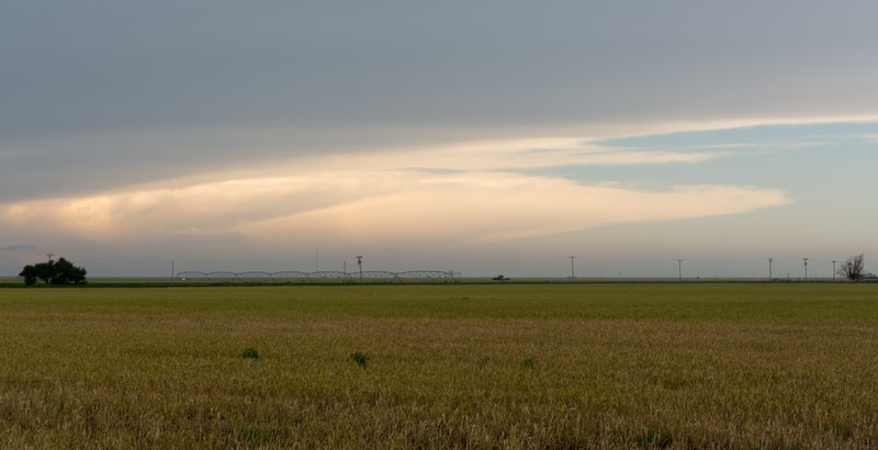 Auf Höhe Lubbock angekommen, lag vor uns eine lose Kette von Gewittern inkl. 2..3 Superzellen. Letztere waren für uns zu weit weg und wir hatten auf Neubildungen am südwärts ziehenden Teil der Outflowboundary gehofft. Das hat dann sogar geklappt, auch wenn der kühle Outflow jede Neubildung in Kürze wieder unterschnitten hatte.