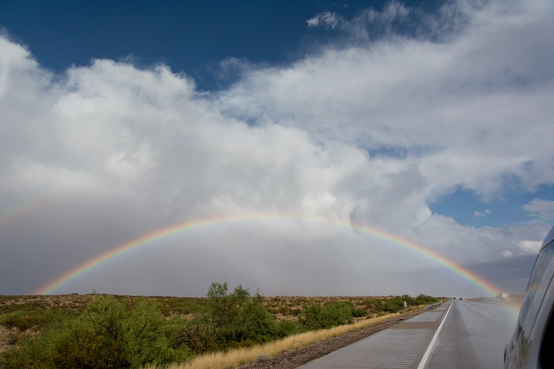 Erst ab Van Horn, TX klarte es auf und wir konnten eine aus Mexiko hereinziehende Superzelle beobachten, hier ist sie noch 20km hinter der Grenze: