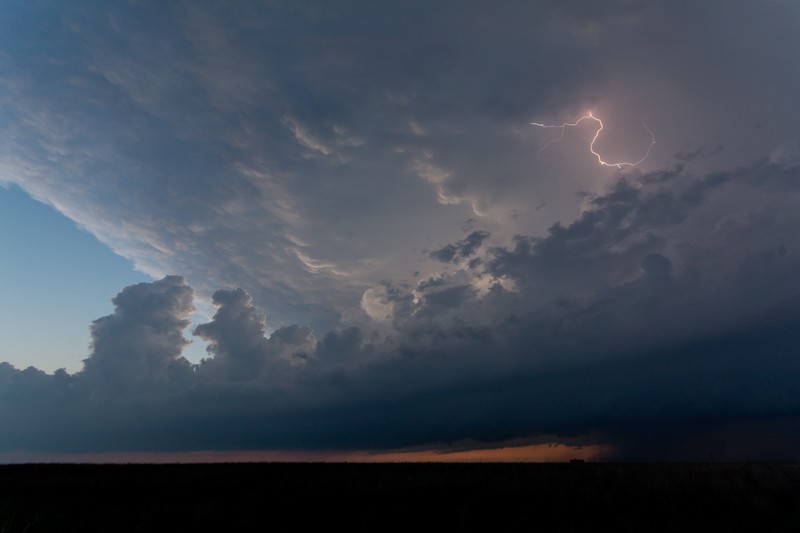 Insofern sind wir froh, unser eigentlich angepeiltes Chasingziel überhaupt noch bei Licht erreicht zu haben. Als wir dran waren, hat die Zelle bereits auf über 50km Länge einen oder mehrere Tornados produziert. Laut nachträglichen Berichten soll es ein 90 Minuten andauernder Tornado gewesen sein!