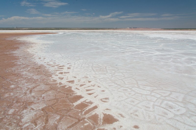 Die Seen versalzen vermutlich unter anderem, weil zusätzliches Wasser (z.B. von Regen) sofort in Löchern verschwindet: