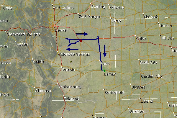 Wir begleiten heut eine langlebige Superzelle auf ihrem Weg von Colorado nach Kansas.