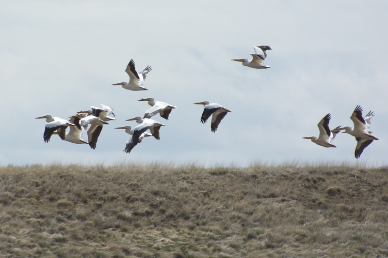 Aber es gibt hier auch Pelikane... folgende haben sich in den Resten eines abgelassenen Sees die in den Pfützen zusammengepferchten Fische einverleibt. Typisch amerikanisch: Fastfood eben.
