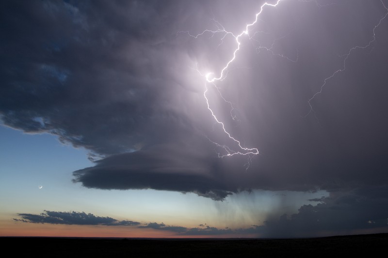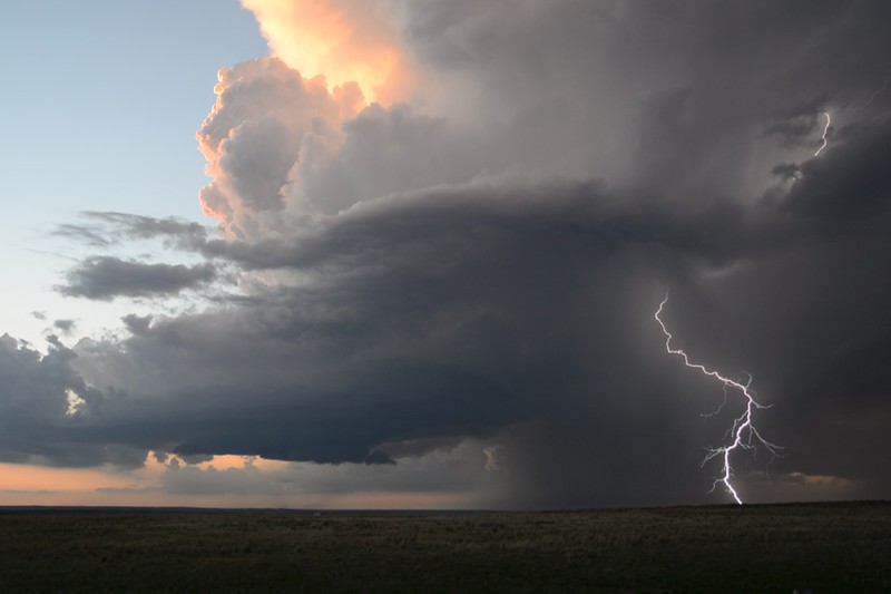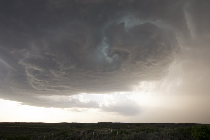 Wir konnten 2 fotogen Superzellen im Abendlicht beobachten.