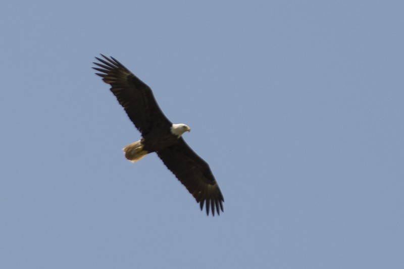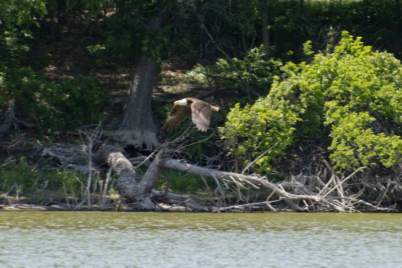 Gestern hatten wir südlich Perryton einen Bald Eagle erspäht. Daher verbringen wir heut etwas Zeit an einem in Frage kommenden Jagdrevier in Form eines kleinen Stausees. Und sieh an, da ging der Kollege auf Fischfang: