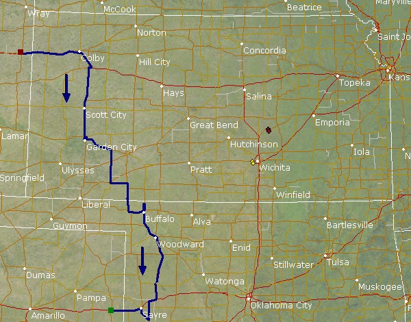 Daher brechen wir die Jagd hier ab und gehen über zu Plan B, nämlich paar einzelne Zellen im östlichen Texas Panhandel.
