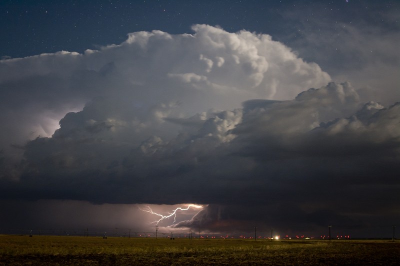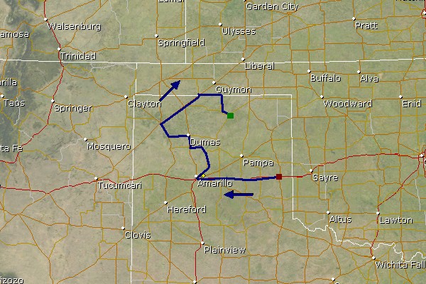 Wir begleiten die am Südende einer Gewitterfront eingelagerte Superzelle auf ihrem Weg durch das nördliche Texas Panhandle.