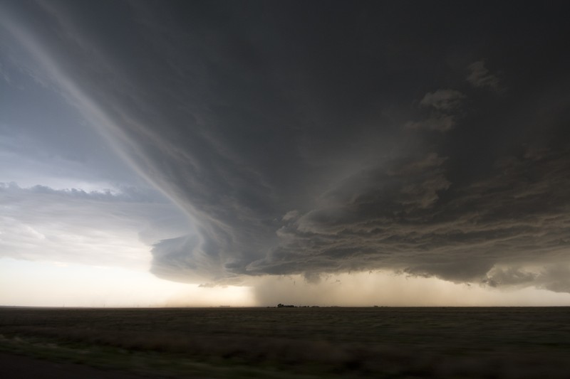 Das läutete das Ende der Jagd ein, da nun Sturmböen von Nord die Beobachtungen erschwerten und Wolken über uns die Sicht auf die Mesozyklone im Westen blockierten.