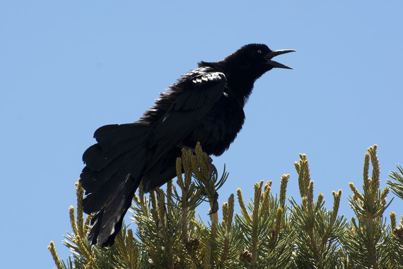 Eine Bootschwanzgrackel beim Jodeln: