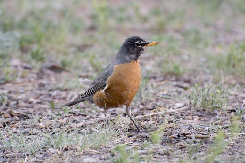 Den "American Robin" (Wanderdrossel) gibt es hier überall. Könnte das auch als bunte Amsel durchgehen....