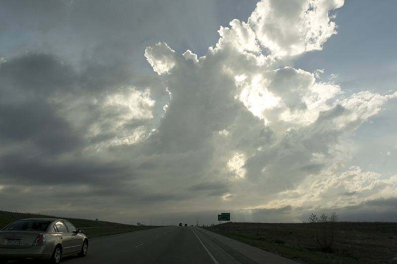 Irgendwo dahinten war laut Radar ein Gewitter drin, das rechts zur Strömungsrichtung abdriftete, also vermutl. eine Rightmover-Superzelle. Leider machte aber tiefe Bewölkung nach und nach jegliche visuelle Aufklärung unmöglich.
