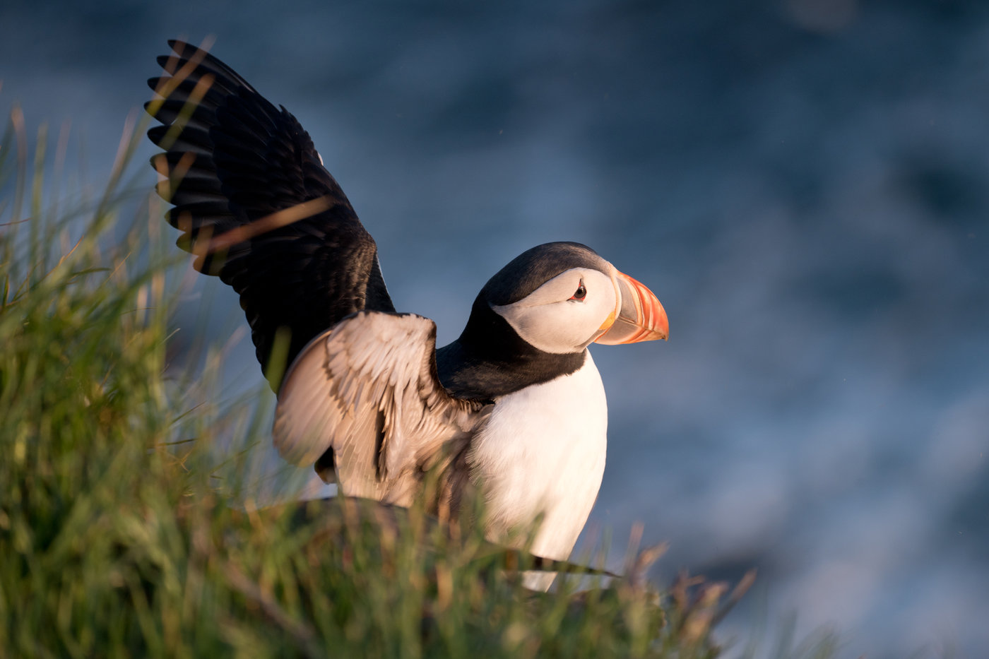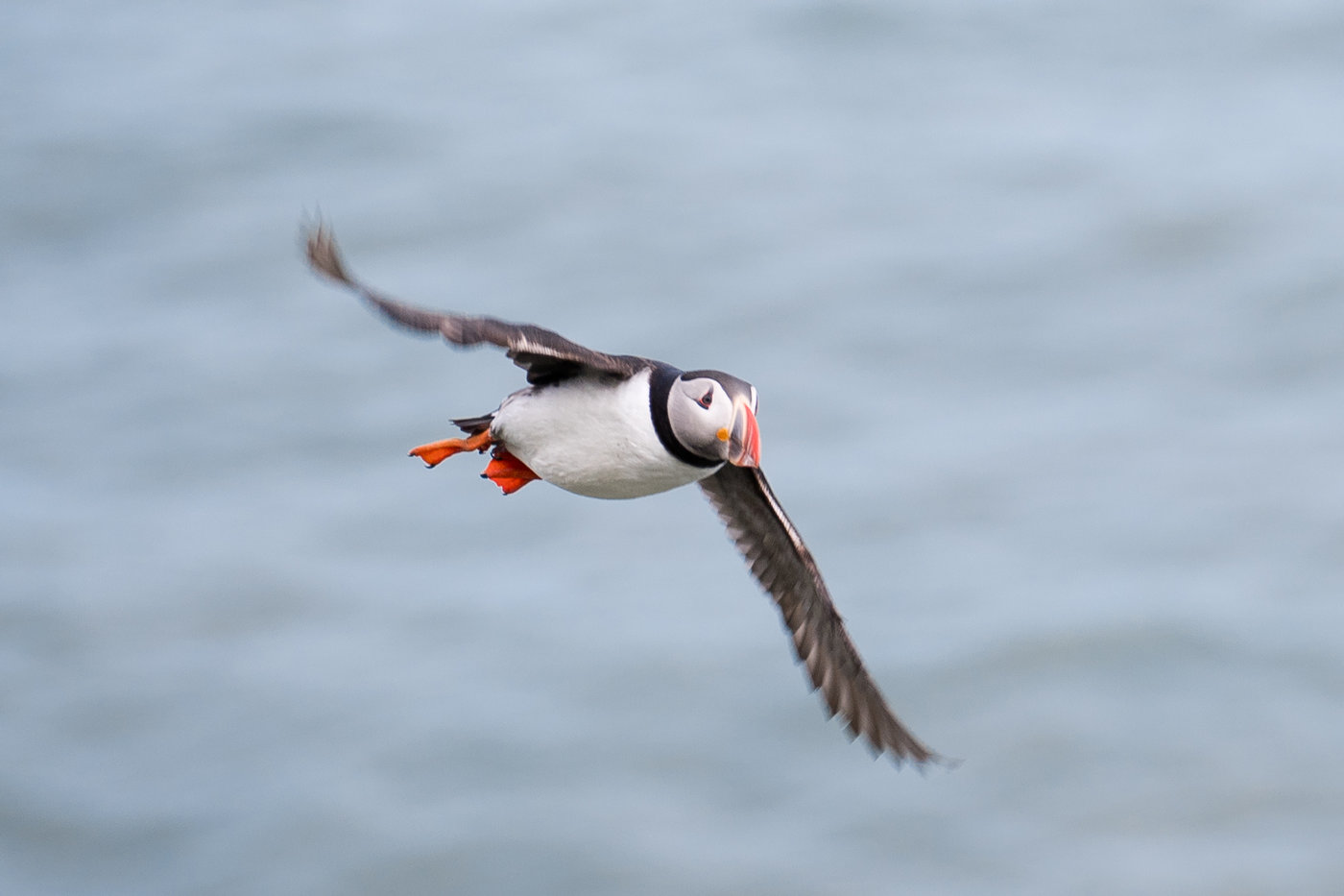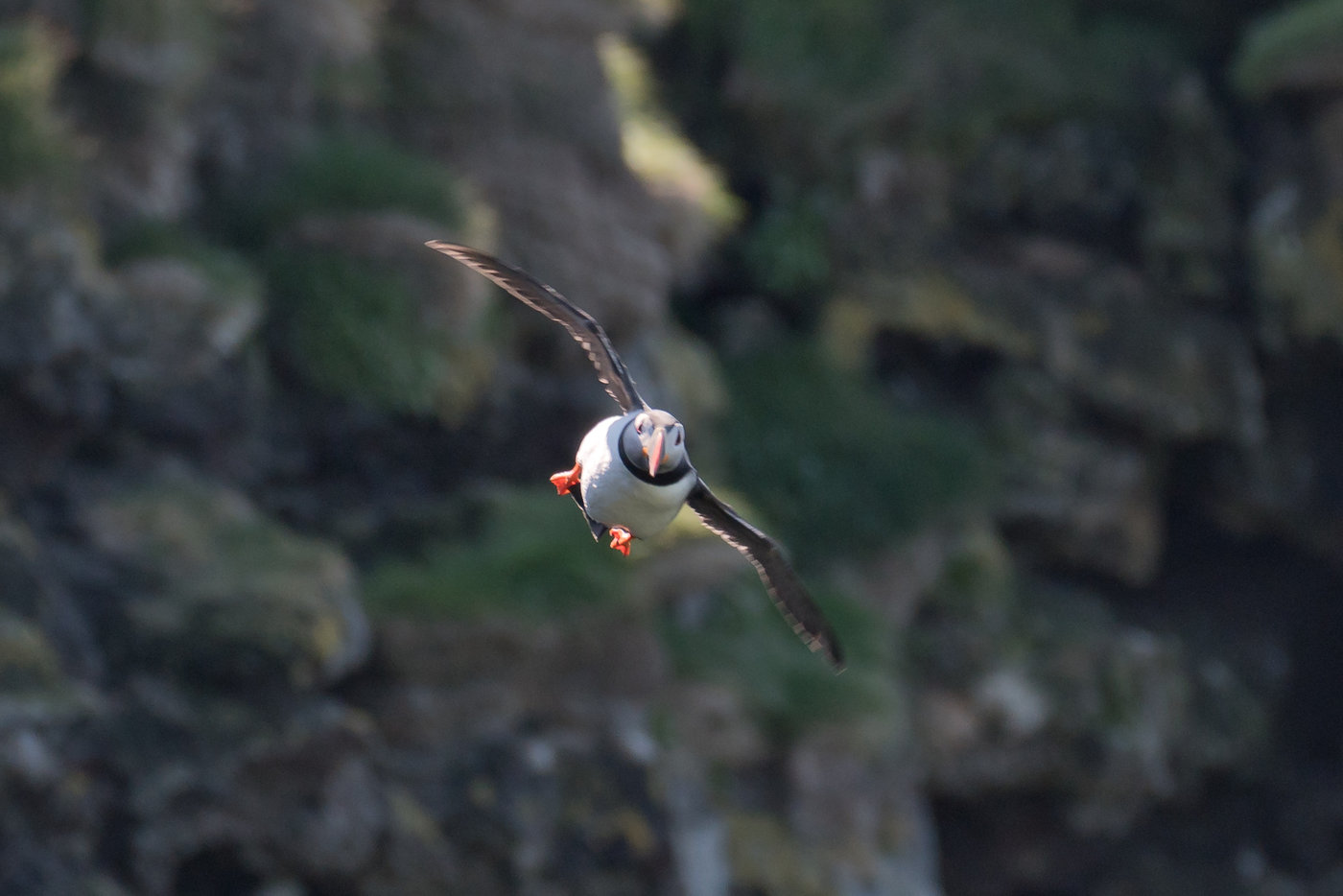 Der Vorteil der Puffins, falls man doch mal abrutscht - die können fliegen. Ja, tatsächlich! Nicht gerade elegant, aber es geht.