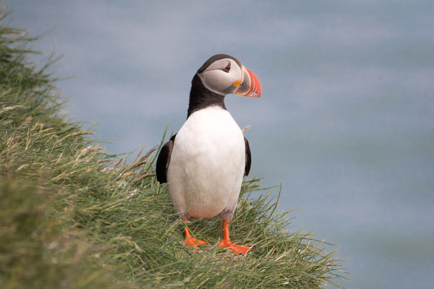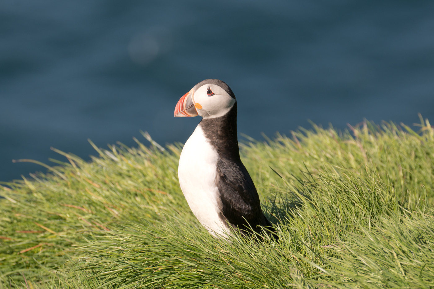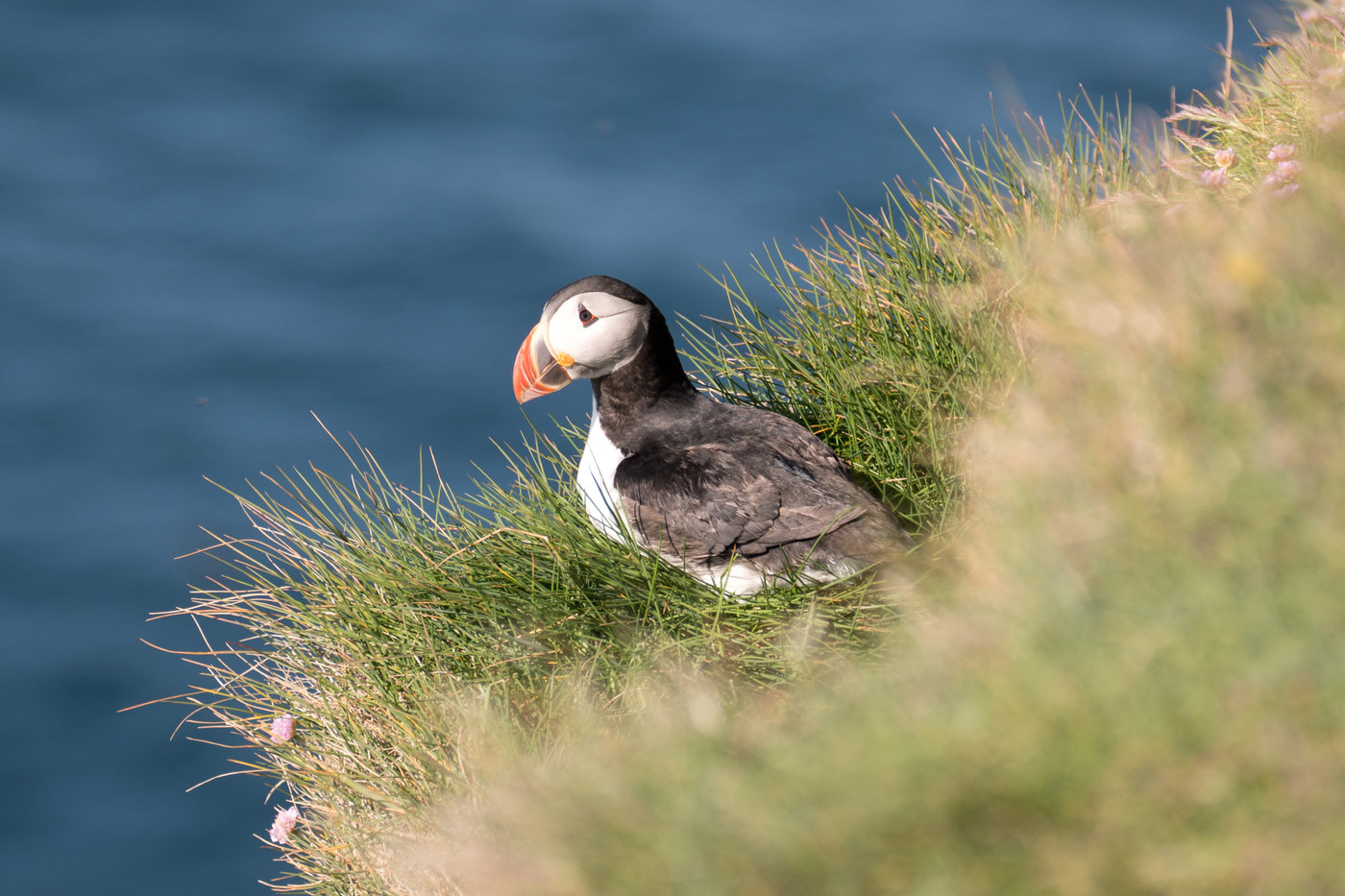 Solang man nicht all zu sehr stolpert und ganz langsam unterwegs ist, kann man die Puffins quasi streicheln. Diese Schrecken bei hastigen Bewegungen auf, wie wenn der Polarfuchs angreift.