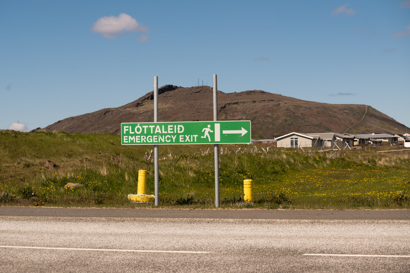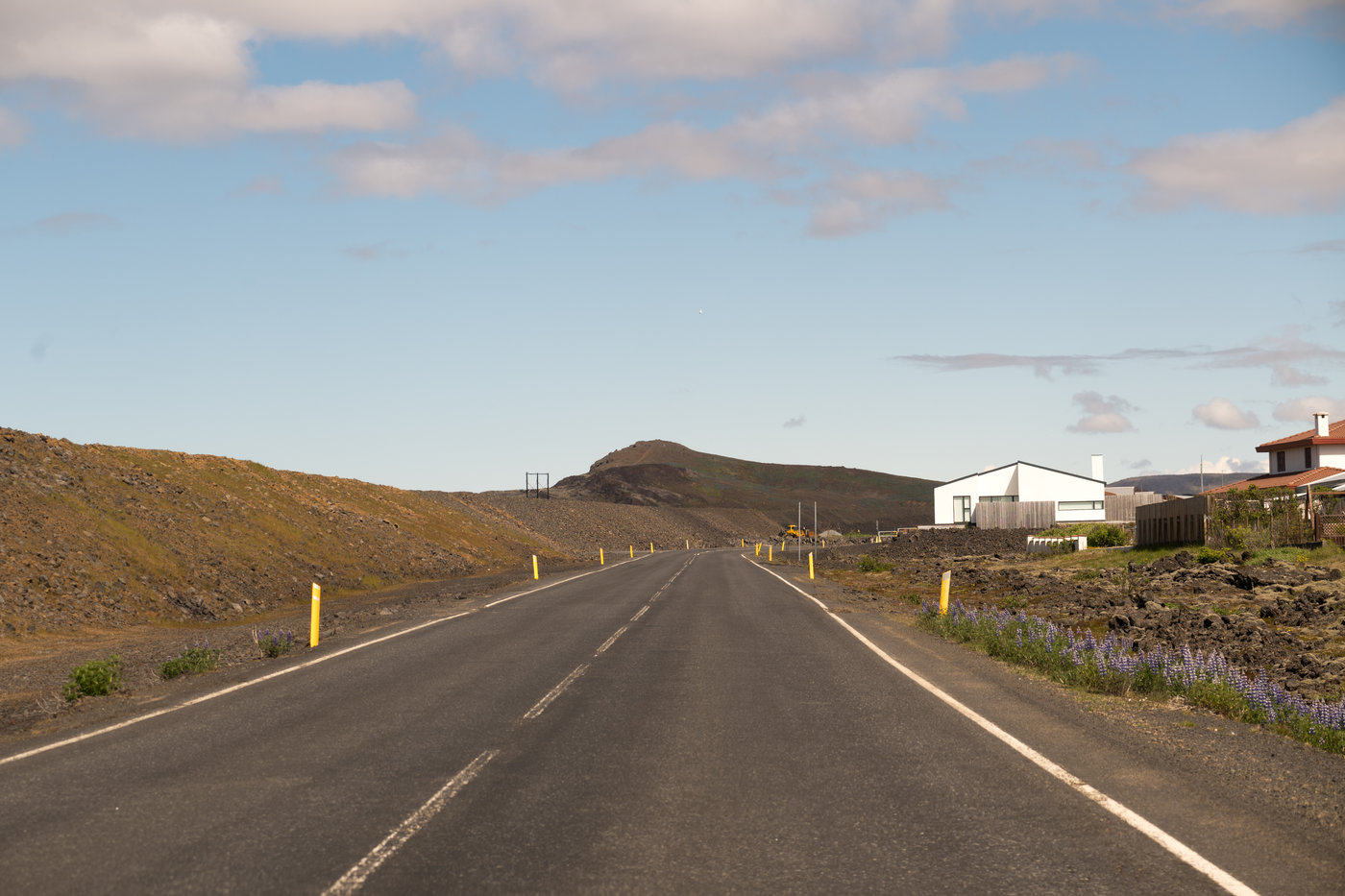 Derzeit bricht gerade kein Vulkan aus, die letzte Eruption war etwa im März hier in Grindavík.