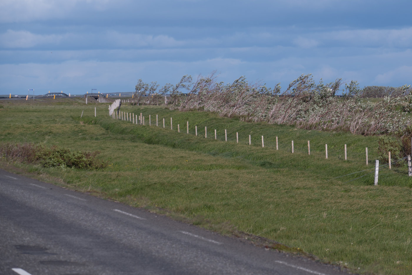 Wie bitte? Das hat auf jeden Fall unseren Plan vereitelt, Island einmal auf der Ringstraße zu umrunden. Denn neben dem Wind gab es im Norden und Osten große Regen- und Schneemengen. Schon wieder unser ganz spezielles Wetterpech? Wohl eher die Norm als die Ausnahme und sollte man mit auf dem Schirm haben bei einer Islandreise... Es gibt hier z.B. kaum Bäume und wenn, dann in geschützten Bereichen hinter Bergen. Bei Bäumen im ungeschützten Bereich kommen Erinnerungen an die krummen Bäume der Plains auf: