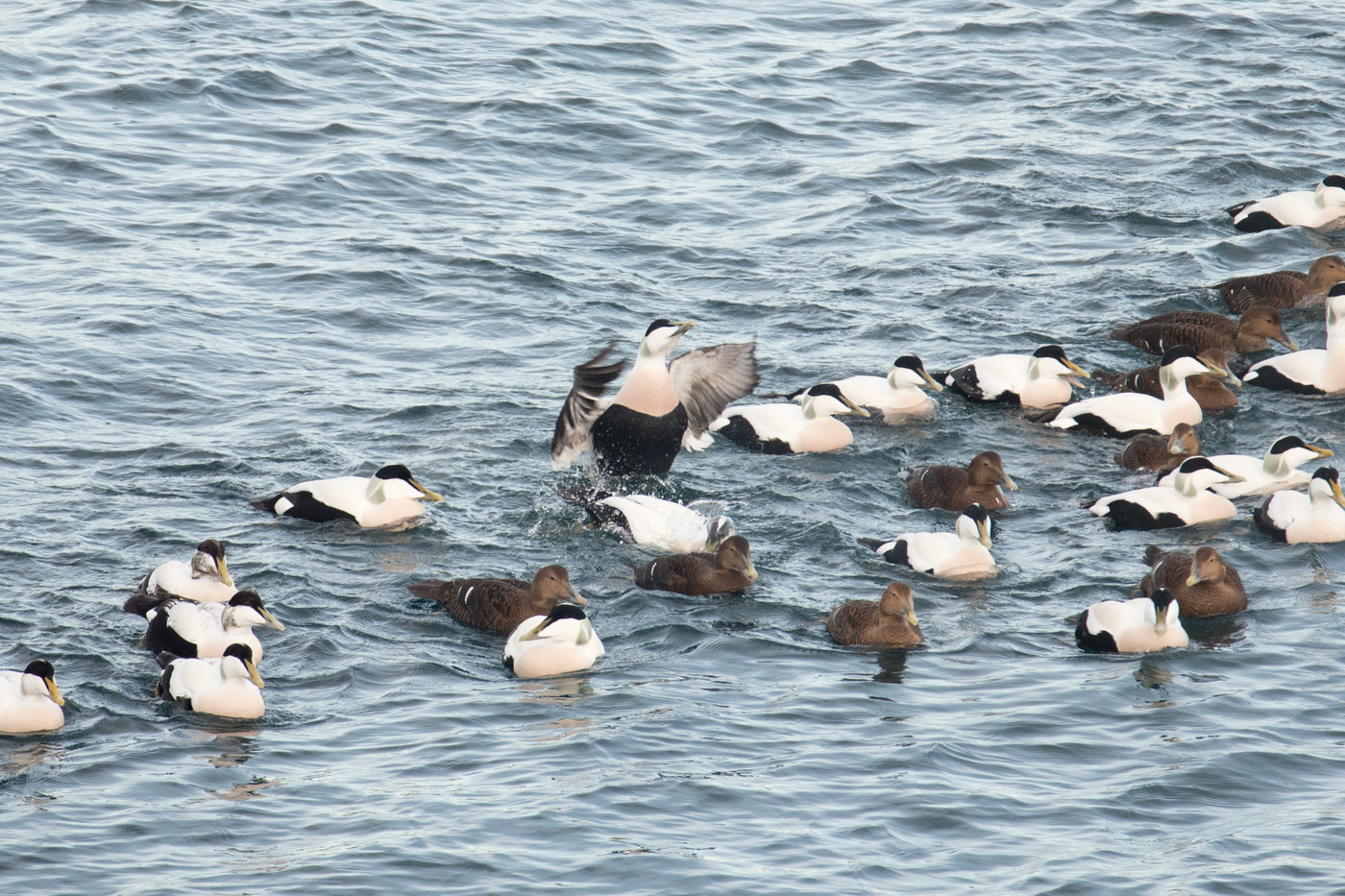 Die Beute der Enten sind Schnecken, Seeigel, Seesterne und ähnliches. Einen recht großen Teil davon müssen sie aber an die Banditen der Lüfte abtreten: