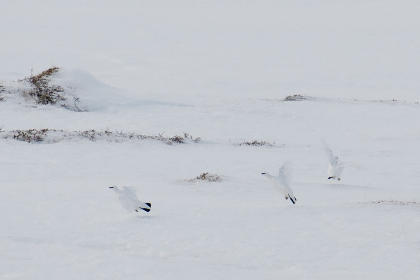 Plötzlich fliegt was am Straßenrand auf, Schneehühner: