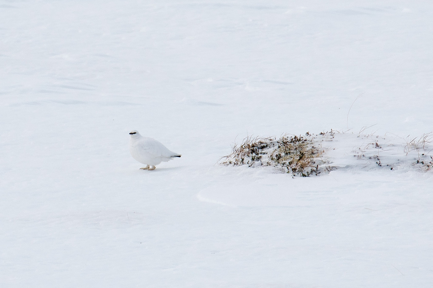 Die Kollegen haben eine wirklich gute Tarnung. Ist wie bei den Polarlichtern. Erst die Fotobearbeitung mach das Schneehuhn umfassend sichtbar: