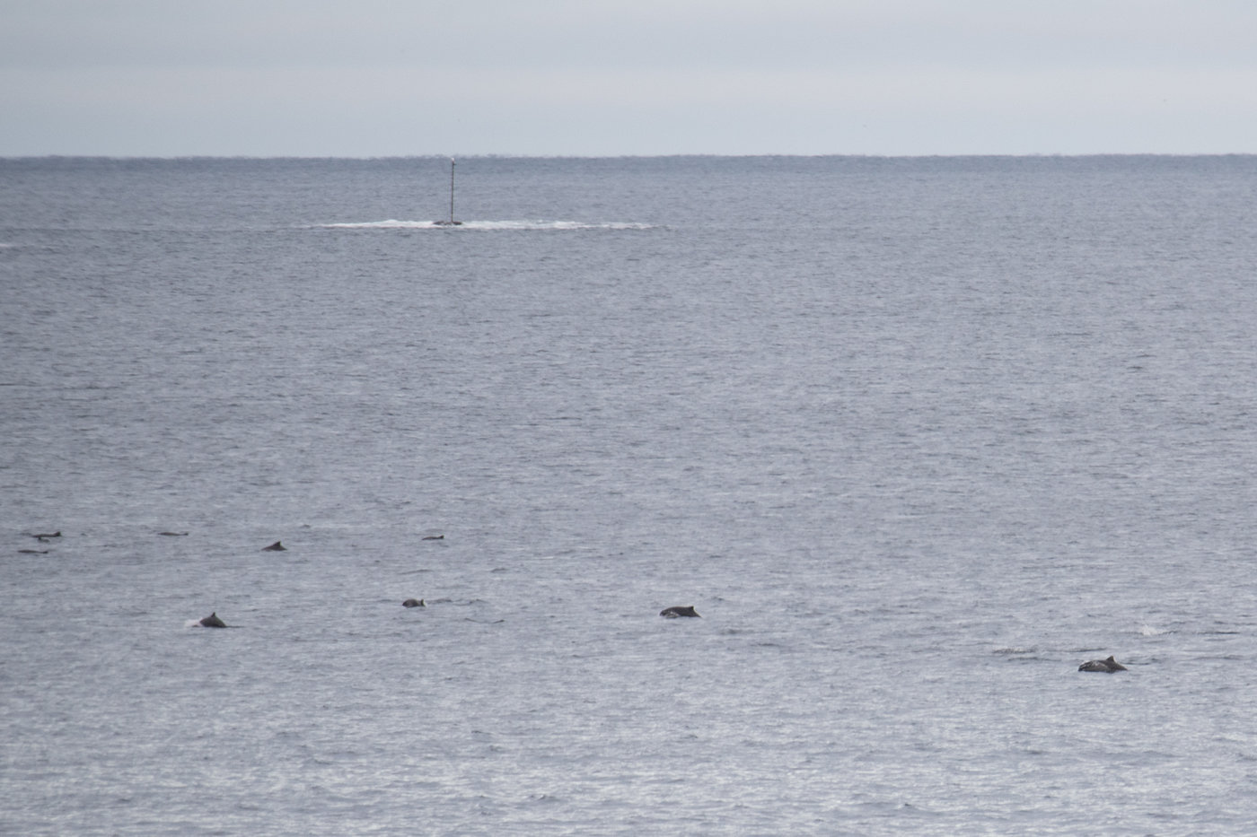 Weiter nach Süden: In der Bucht des Flughafens Honningsvåg sind schon seit Tagen Schweinswale zu Besuch. Heute stoppen wir mal und versuchen die Menge zu schätzen. Verblüfft stellen wir fest, dass die ganze Bucht voll ist. Das müssen mind. 200-300 Tiere sein. Wer weis, was die da zusammentreibt.