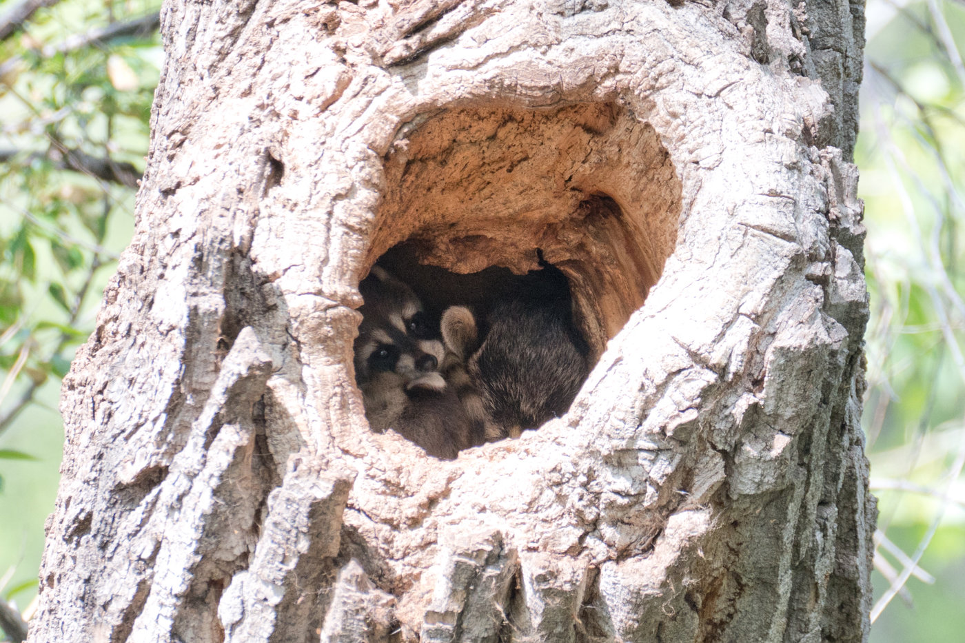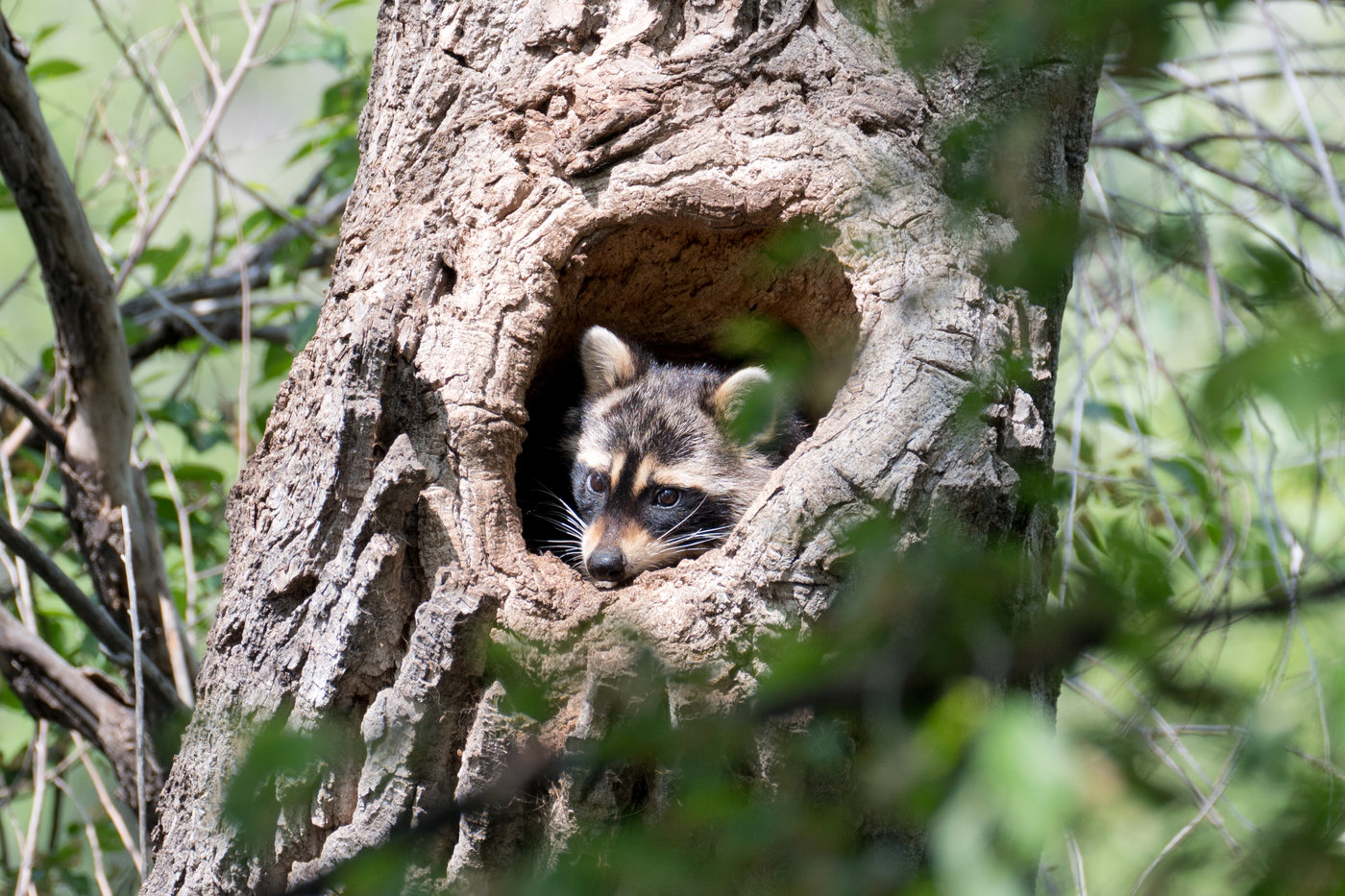 Feb 21 - Tagsüber trifft man die maskierten Banditen meist nur beim Schlafen an. Hier in einem Baum: