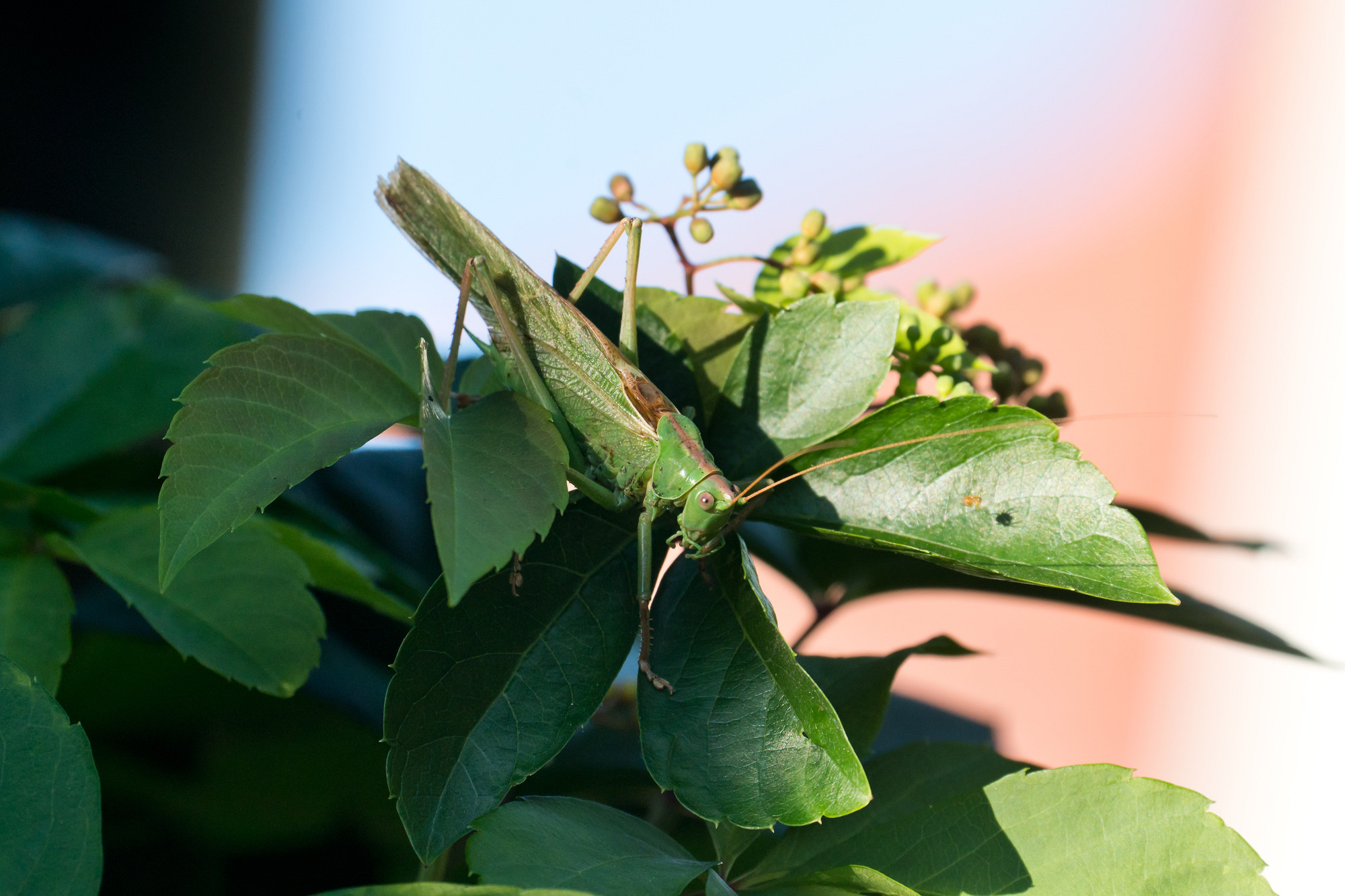 Einer der nächtlichen Musikanten am Tag erwischt, das Heupferd: