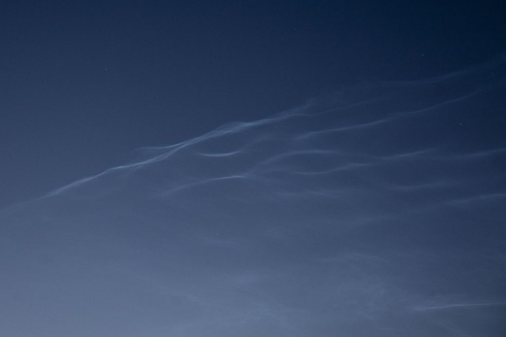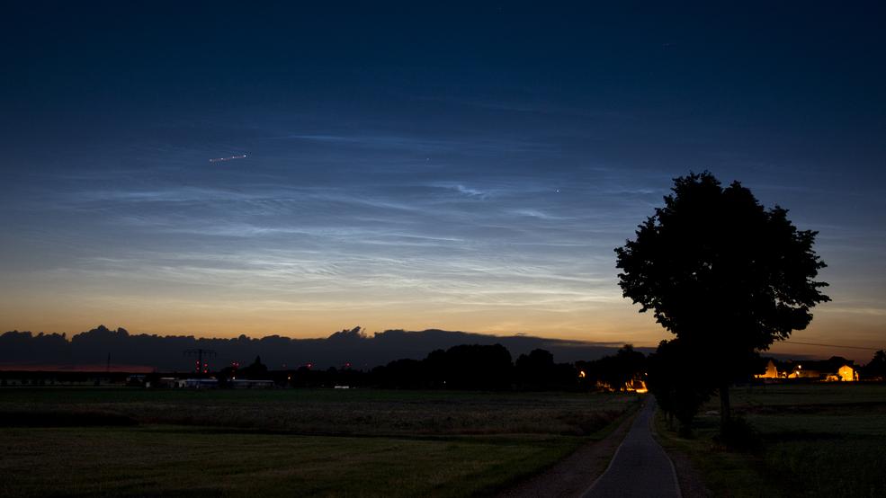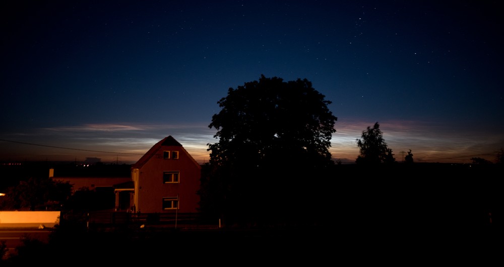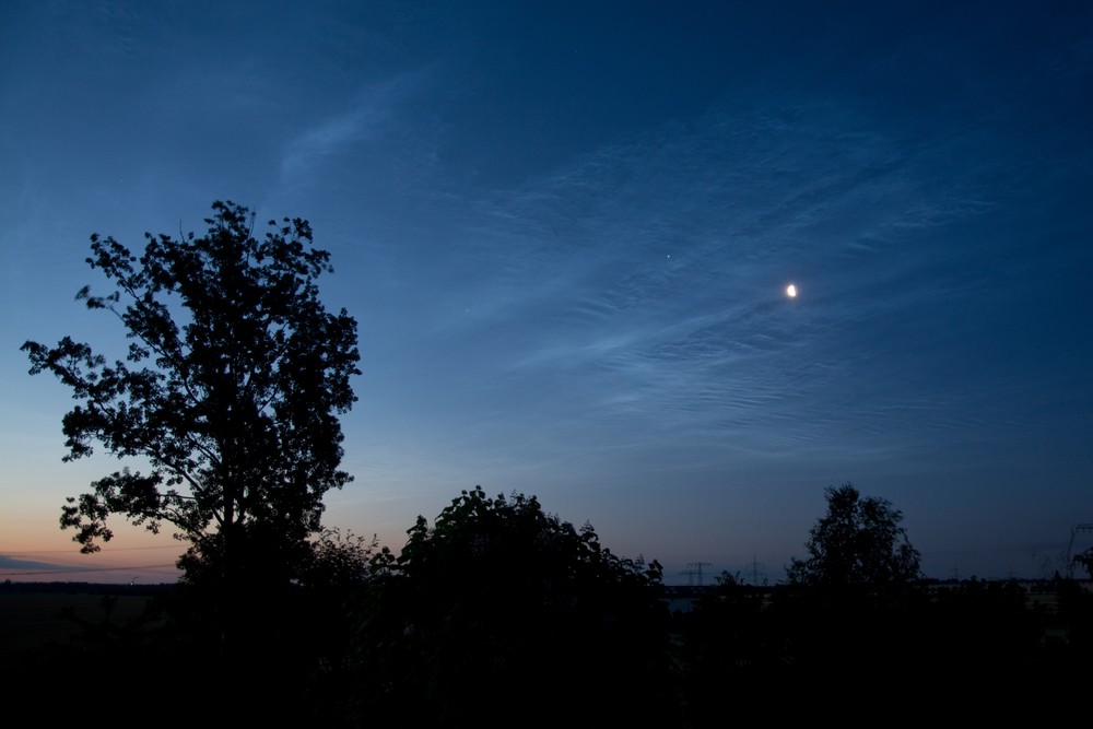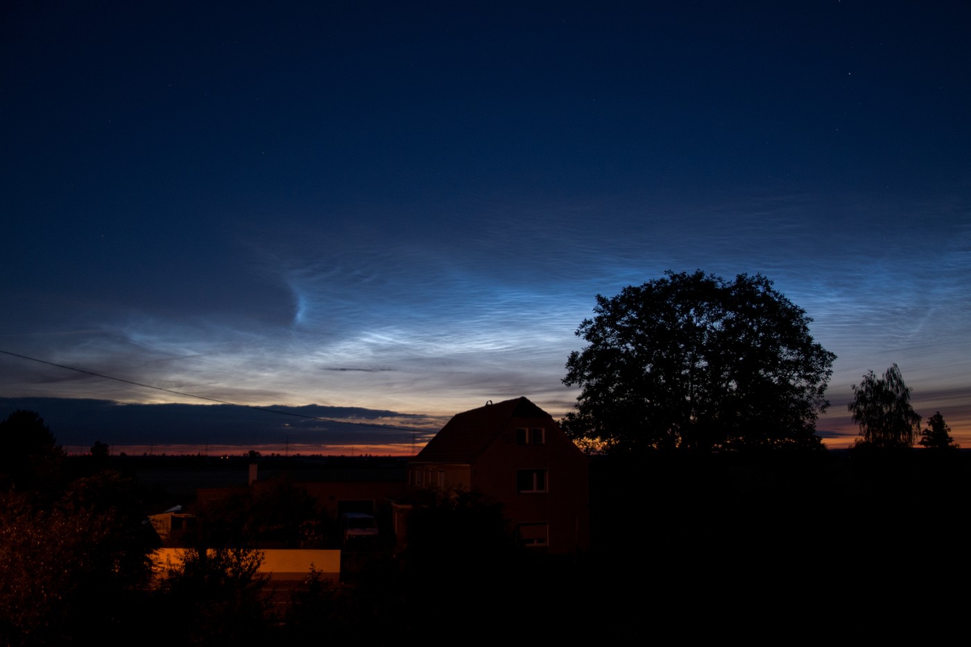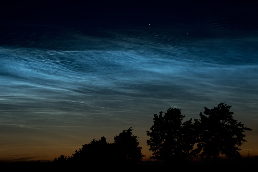 Leuchtende Nachtwolken kann man in Deutschland meist nur im Juni und Juli beobachten, wenn Sonne und Erdachse im richtigen Winkel zueinander stehen. Wenn dann noch in etwa 80km Höhe die richtigen Bedingungen herrschen, können dort Wolken entstehen, die bis weit nach Sonnenuntergang sichtbar sind. Es gibt sogar Tage, wo diese Leuchterscheinungen die ganze Nacht durchhalten.